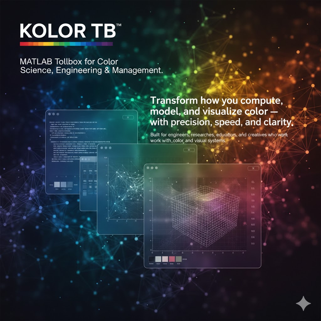 KOLOR TB™ is a MATLAB-based toolbox that brings together 18 powerful toolsets covering every aspect of color science — from spectral data to color appearance, from optical modeling to vision simulation.
